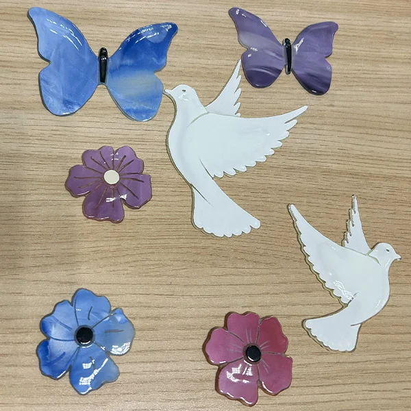 Le fusing du verre en relief avec ajout de décoration est idéal pour orner une pierre tombale ou un monument funéraire sur mesure. Il peut être utilisé pour créer des fleurs stylisées, des formes abstraites, des symboles religieux ou des éléments plus modernes. Placé stratégiquement sur le monument, il attire la lumière et devient un élément central de la décoration funéraire. Associé à d’autres techniques, comme l’incrustation de pâte de verre ou la gravure à la feuille d’or, il permet de concevoir un monument véritablement unique.