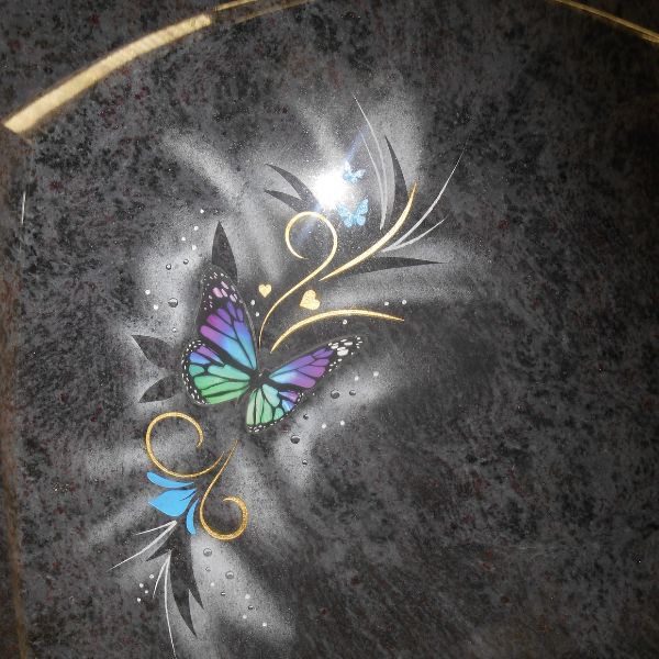 L’incrustation Dibond couleur ou noir et blanc est particulièrement adaptée aux monuments funéraires personnalisés qui nécessitent un élément visuel fort. Elle permet d’intégrer un souvenir photographique ou un décor symbolique directement dans la pierre, créant un lien émotionnel durable. Cette technique peut être associée à d’autres procédés décoratifs comme la gravure à la feuille d’or, la sculpture en relief ou l’incrustation de verre pour créer un monument sur mesure.